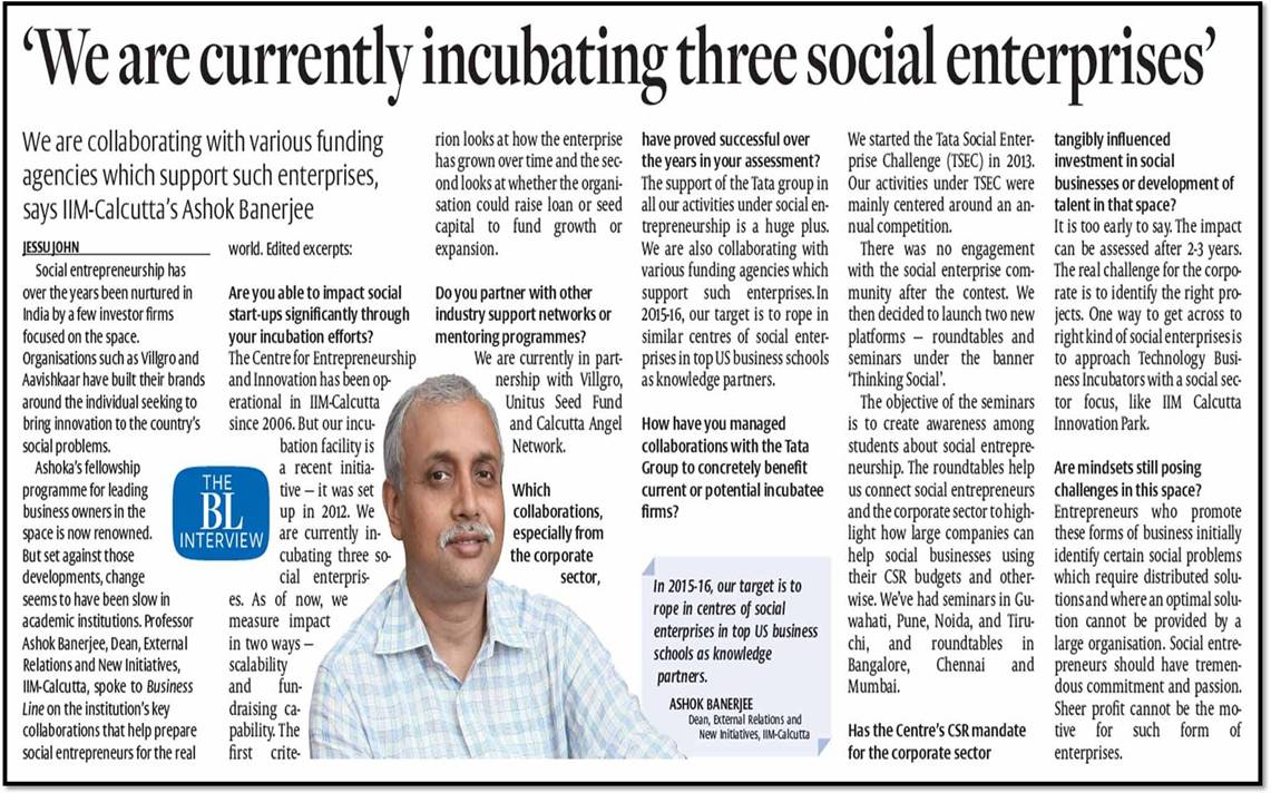 The incubator at the Indian Institute of Management Calcutta – IIM Calcutta Innovation Park – focuses on healthcare, education, cleantech, lifestyle, analytics, Internet of Things. But, says Subhranghsu Sanyal, Chief Executive Officer, IIMCIP, there is a special focus on social enterprises.